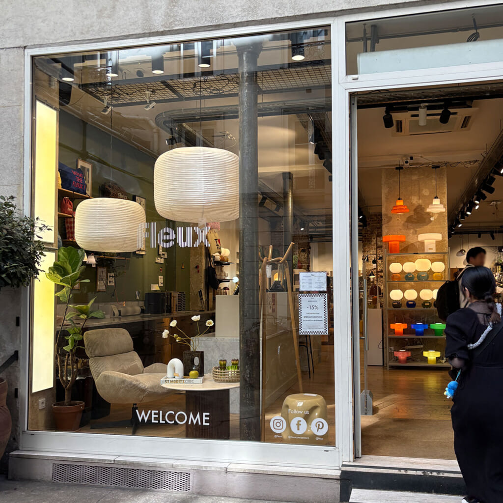 「Fleux / フルックス」はカラフルで遊び心のある雑貨を中心に、小さな1店舗が4つ隣接していて、それぞれにテイストが異なっていました。その中でも、照明器具や家具が数多く並んでいた店舗の雰囲気が段違いに変わり、印象的でした。