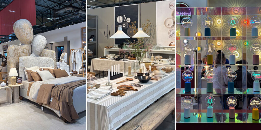 クリスマス前シーズンなこともあり、ビビットカラーやライトを取り入れたカラフルで鮮やかな展示ブースや、前を通ると気を取られてしまうようなユニークなオブジェも多い一方、落ち着いた居心地の良いお部屋のような展示もあり、ブースごとに魅せ方が大きく変わる様子がとても印象的でした!
