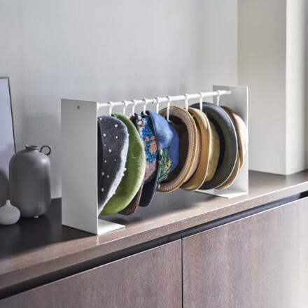 フック付きの帽子収納スタンドです。帽子をかけて収納するのにピッタリのアイテムで、収納場所や帽子の個数に合わせて横幅を調整できます。場所を取りやすい帽子をすっきりと収納でき、目当ての帽子をサッと取り出せるのも魅力です。