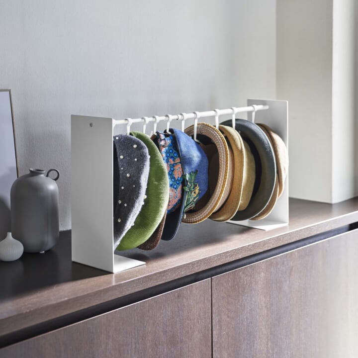 帽子のほかに、スカーフやファッション小物など、工夫次第でさまざまなものを収納できます。