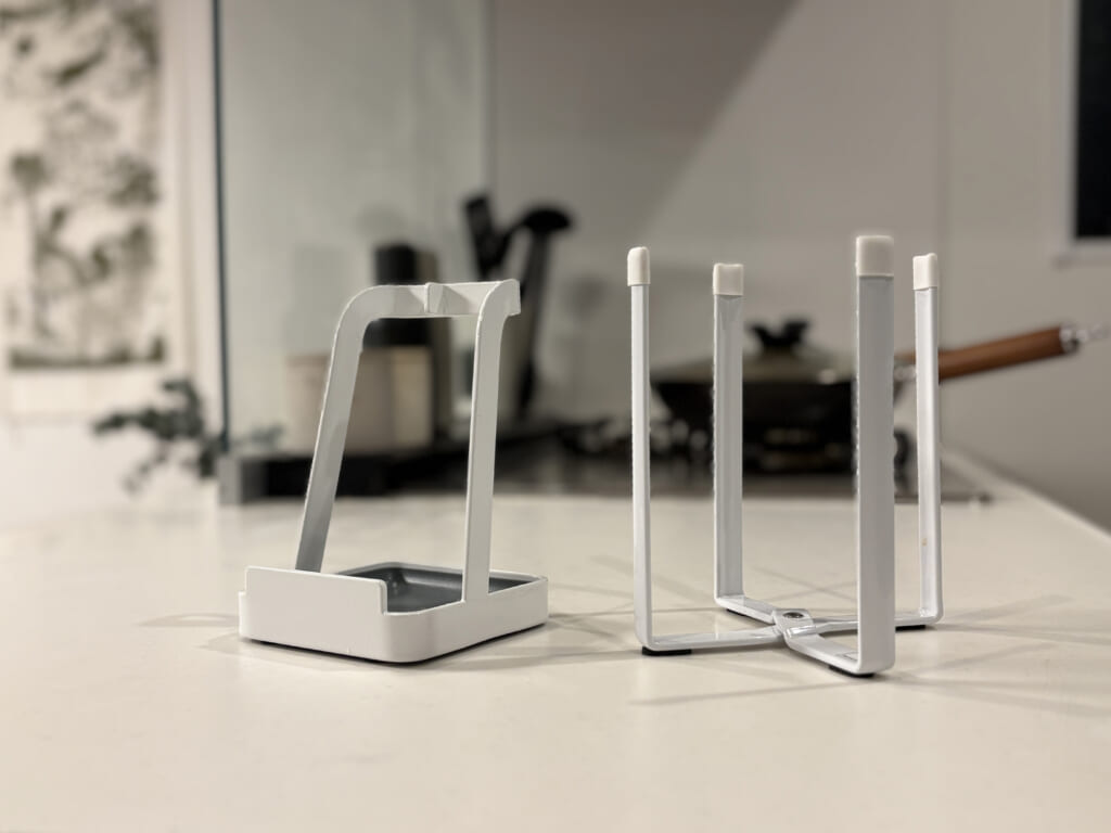 「お玉&鍋ふたスタンド」は鍋蓋や調理ツールの一時の居場所として