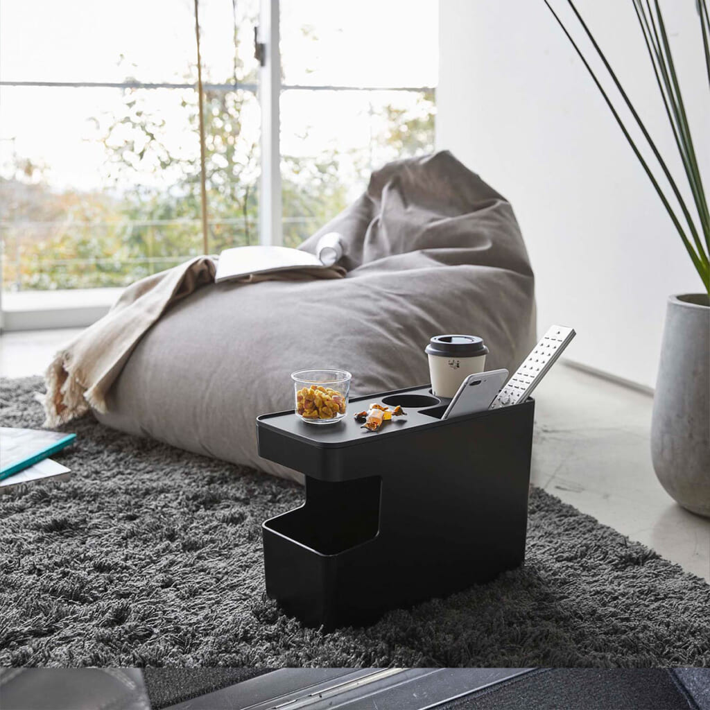 ローソファーの横に置けば、ドリンクやリモコンを置いたり、小物をまとめる“ごみ箱付きのサイドテーブル”としても便利です。見た目もすっきりしていて、インテリアになじむデザイン。