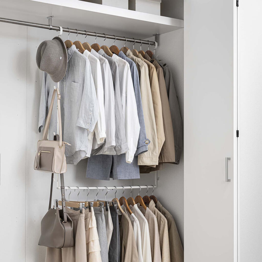 伸縮収納力アップ2段ハンガー スマート