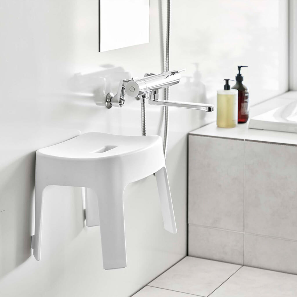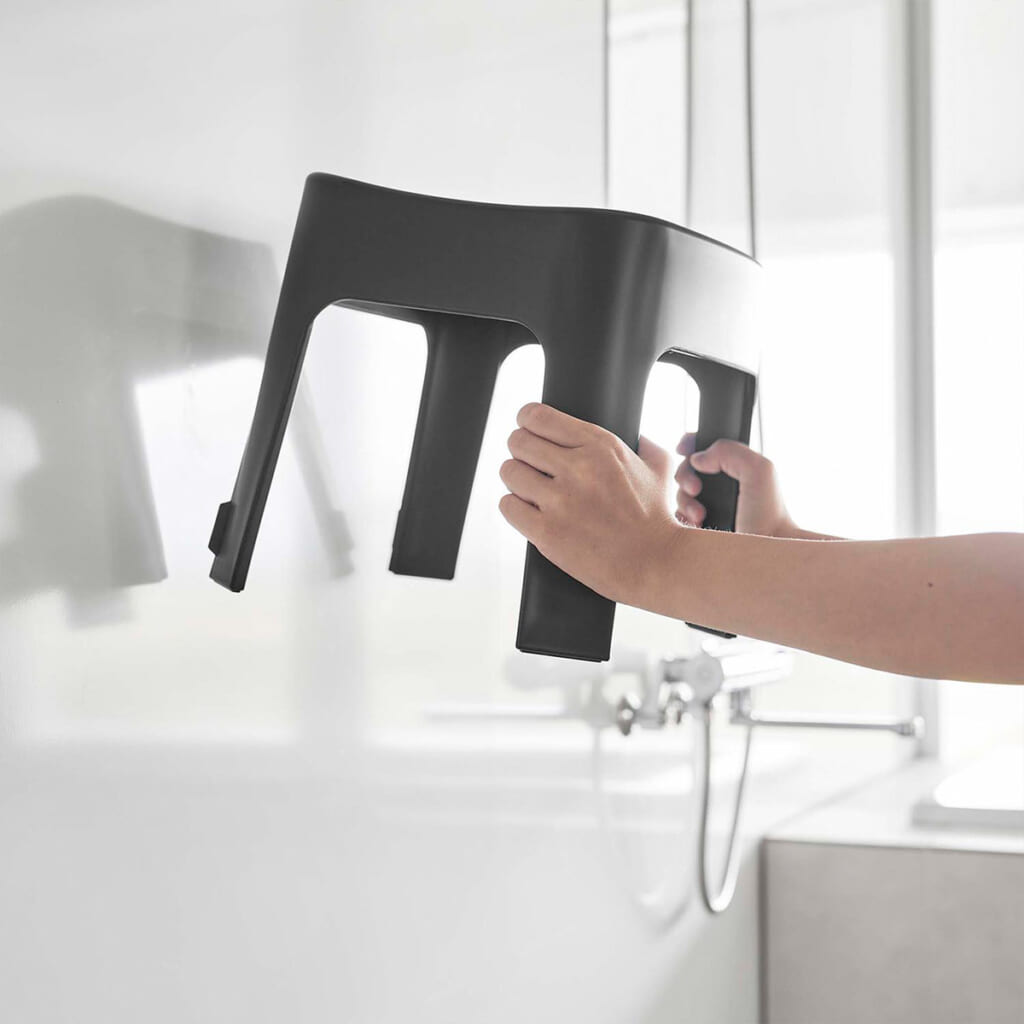 内蔵されたマグネットでお風呂の壁に貼り付けて収納できる風呂イスです(高さ25cmタイプ)。浮かせて収納できるので、スッキリ清潔に保つことができ、床のお掃除もスムーズに。