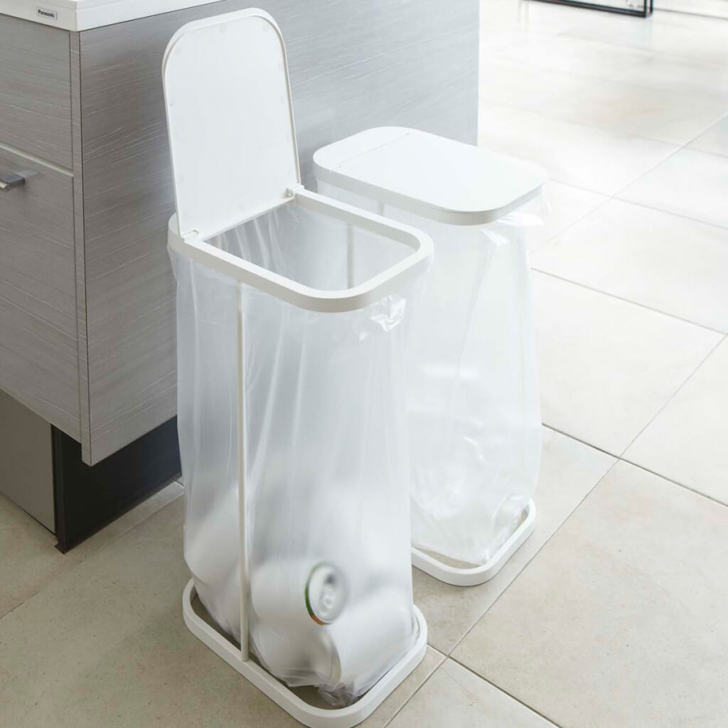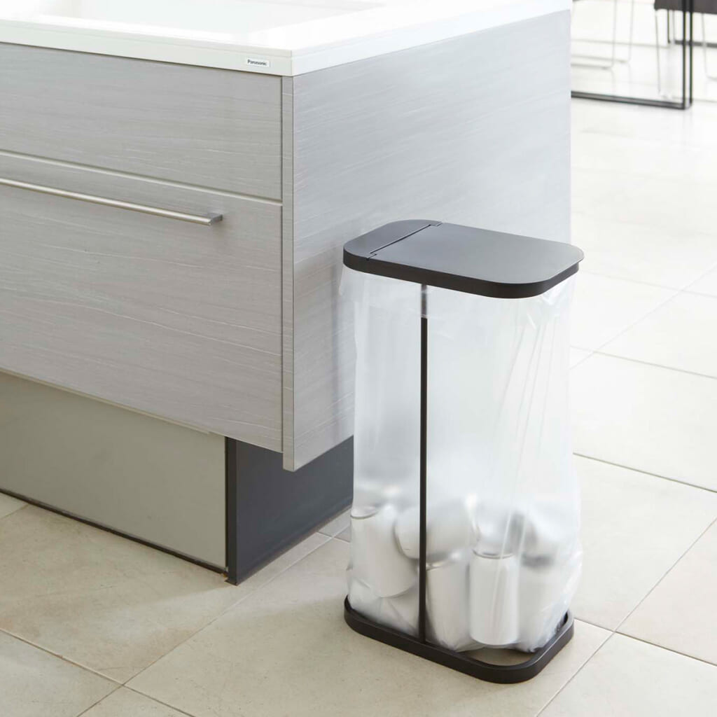 蓋を外しポリ袋を掛けるだけでゴミ箱になるスタイリッシュな蓋付きゴミ袋ホルダー。30~45L用ポリ袋をセットできます。複数個並べると、。ペットボトルや空き缶などの分別に便利です。