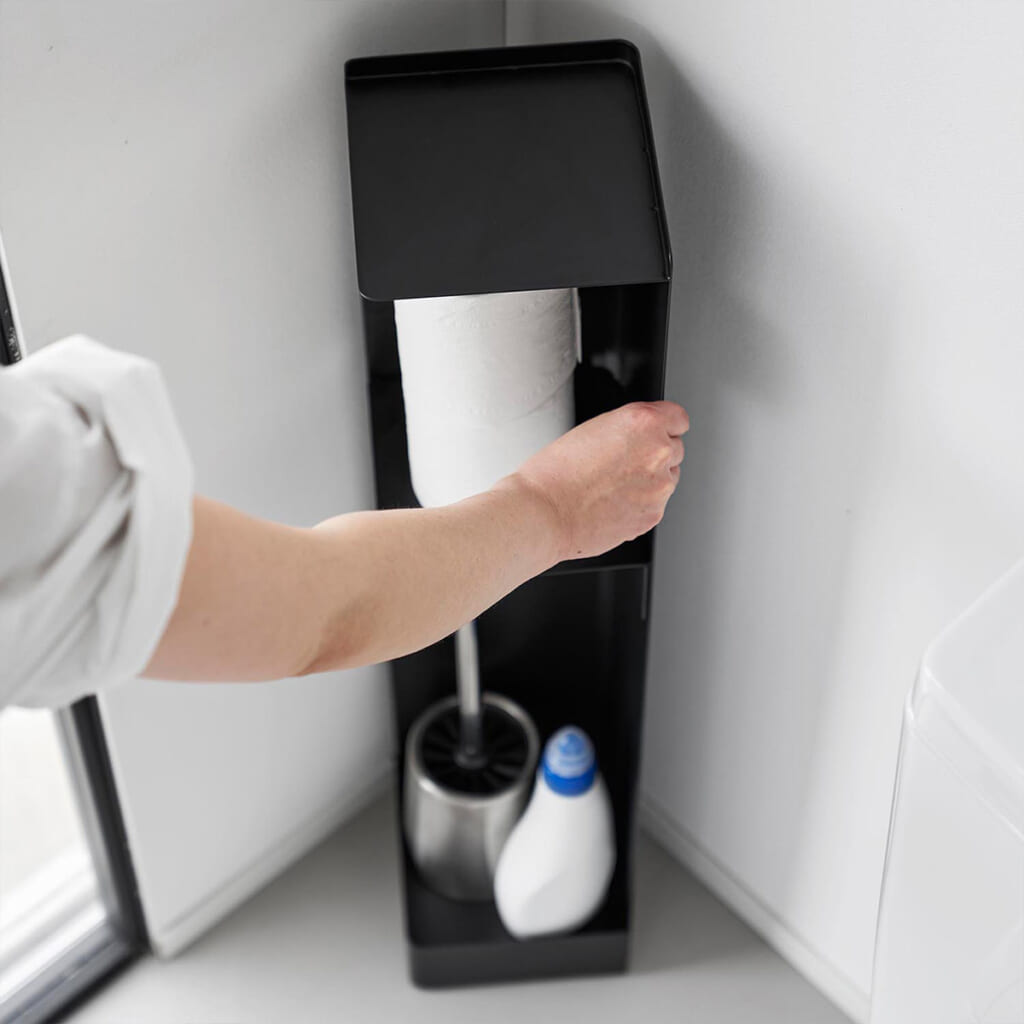 スリム設計のストッカーやスタンドなら、圧迫感を押さえつつ必要量をしっかり確保できます。置いても重く見えないペーパー収納をご紹介します。