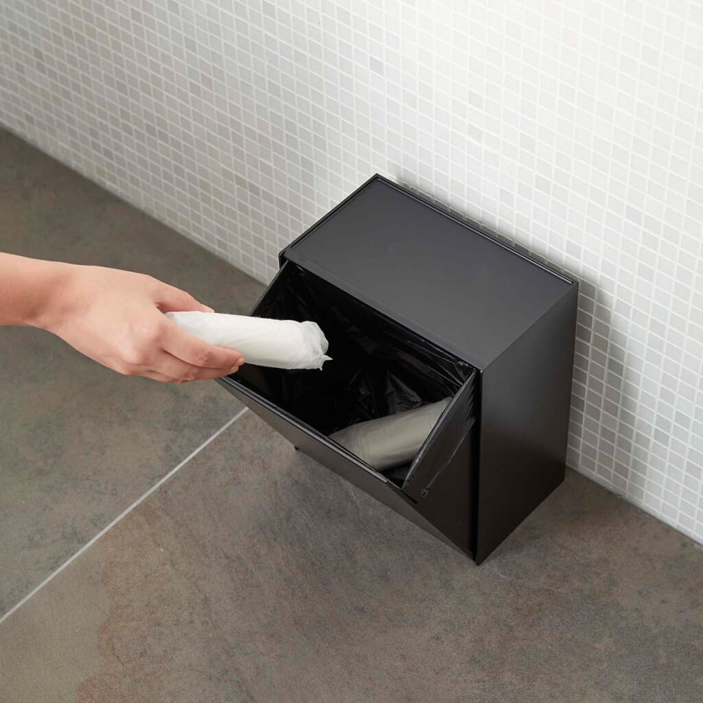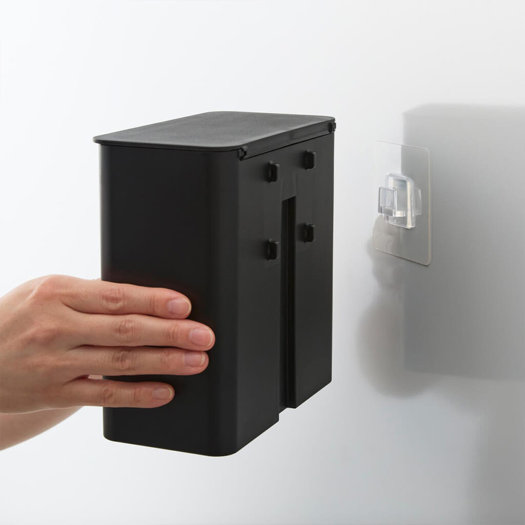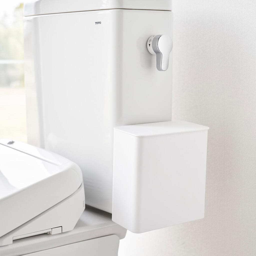 フィルムフックで取り付ける、ミニサイズの密閉ゴミ箱です。トイレタンクに浮かせて設置すればサニタリーボックスとしても使用できます。パッキン付きの蓋でしっかり密閉&目隠し!ゴミの臭いが漏れにくく、見た目もスッキリ。タイルにも取り付け可能です。