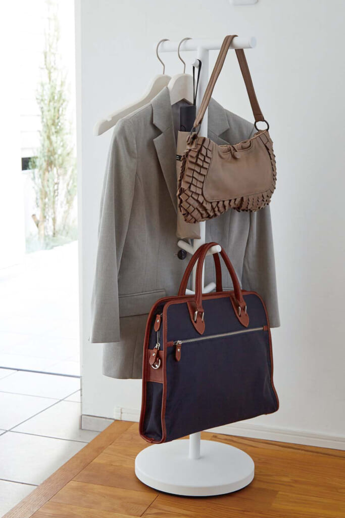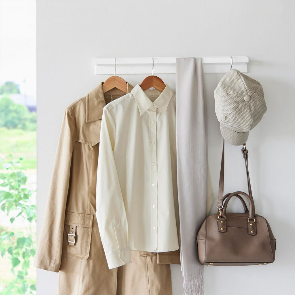玄関にバッグの定位置をつくれば、帰宅後サッと掛けるだけ。片付けまでが自然な流れになります。