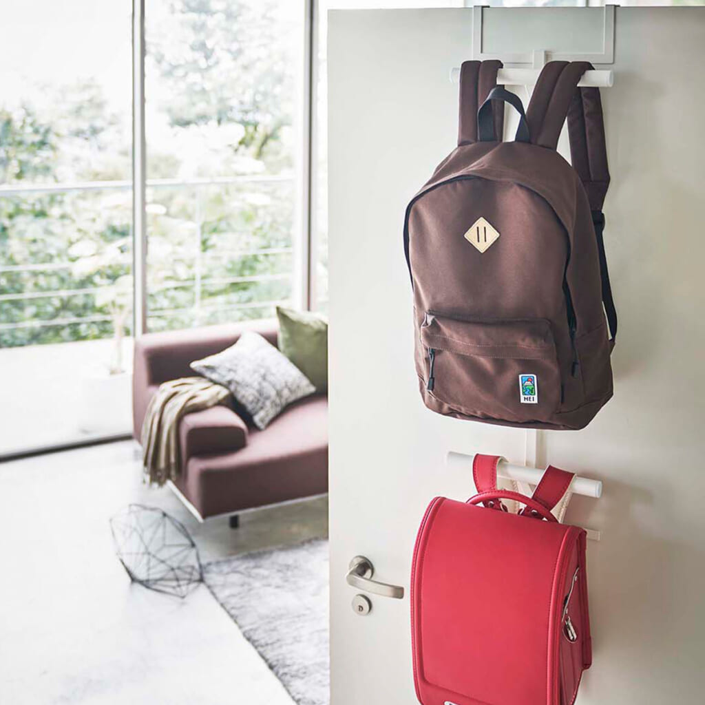 ランドセルやリュック、洋服や小物など用途に合わせて使い方自在の便利な上下2段ハンガー!ドアやクローゼット扉に差し込むだけで、簡単に取り付けられます。
