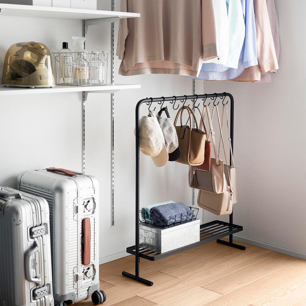 奥行きスリム設計でクローゼットにも置きやすいバッグ収納ラック